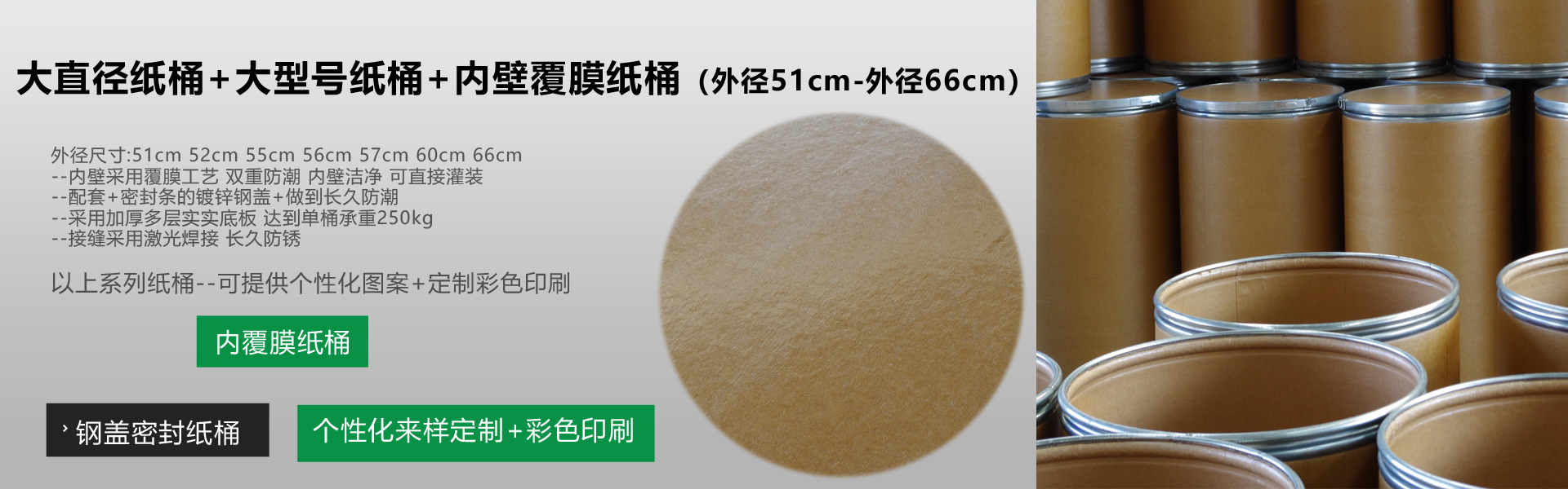 南京盛江包裝有限公司,9年致力于:紙桶,紙板桶,線纜桶,焊線桶,方紙桶,密實紙箱,全紙桶,pur紙桶,直徑28-66cm,高度30-110cm,可滿足不同客戶的定制需求。我們產品種類齊全,質量過硬,廣泛用于電線電纜,焊絲,化工、醫藥、食品添加劑類的包裝。公司占地面積2500平方米,其中建筑面積1800平方米。公司引進國外自動化生產設備,年生產量80多萬只。致力于根據客戶具體要求、量身定做各種規格的...